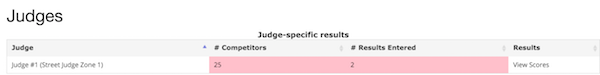 The Event Director can monitor the number of results entered by each judge